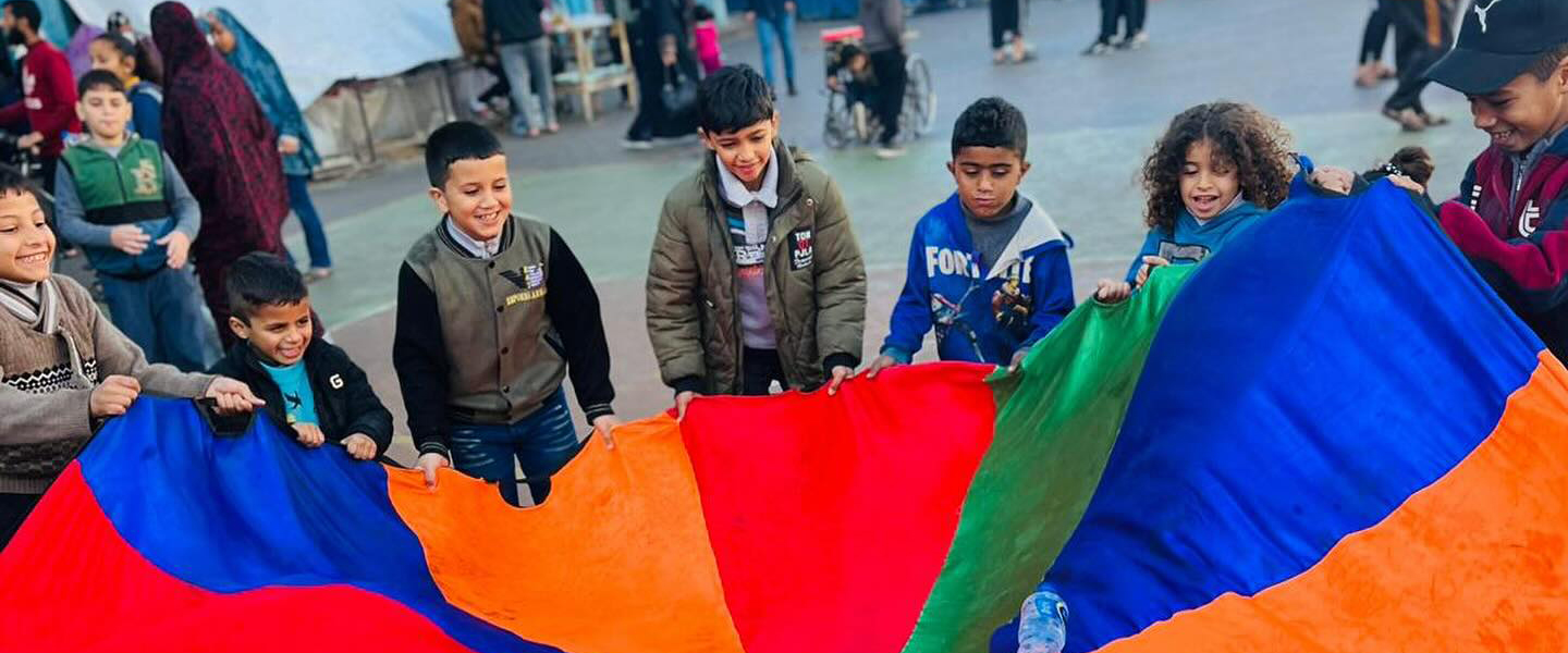 Här, i ett bostadsområde i Gaza som förvandlats till flyktingläger, bär hjältarna inte mantlar eller masker. De bär vita västar med en gul symbol på. De är medarbetare från vår partnerorganisation Palestinian Medical Relief Society (PMRS) och de är läkare, sjukvårdspersonal, psykologer och socialarbetare. Sedan kriget bröt ut har de oavbrutet, dag som natt, kämpat för att ge sjukvård och stöd till alla dem som drabbas av krigets fasor. Framför allt till barn, gravida kvinnor och mammor – de som här, precis som i alla krig, drabbas allra hårdast. I flyktinglägren är det de som ser till att barnen för en stund kan glömma våldet, sirenerna, de raserade hemmen och hungern som gnager. De hjälper barnen att sätta ord på sina upplevelser och känslor. De bandagerar sår, de ger ett mål varm mat, en filt och en kram.
