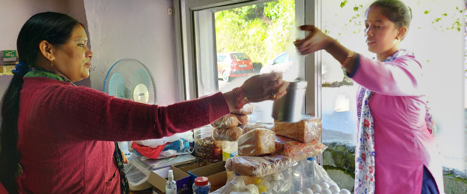 En regnig dag i den indiska staden Gopeshwar besöker vi Usha Devis mejeributik. ”1 liter mjölk, tack”, säger en kund och Usha Devi, 35, svarar med ett stort leende, ”jag packar ner det direkt.”