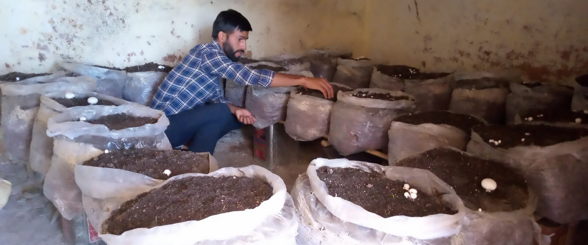 31-årige Narayan Giri i Indien blev av med sitt arbete när hotellet i Delhi där han jobbade stängde ner på grund av pandemin. Arbetslös och utan möjlighet att försörja sig och sin familj fick han återvända till sin hemby. Svampodling visade sig vara lösningen på hans problem.